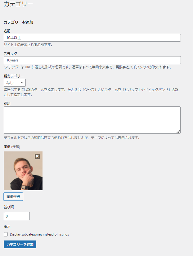 - 画像 ー カテゴリー一覧などに表示されるので、画像は設定をしておくことをお勧めします