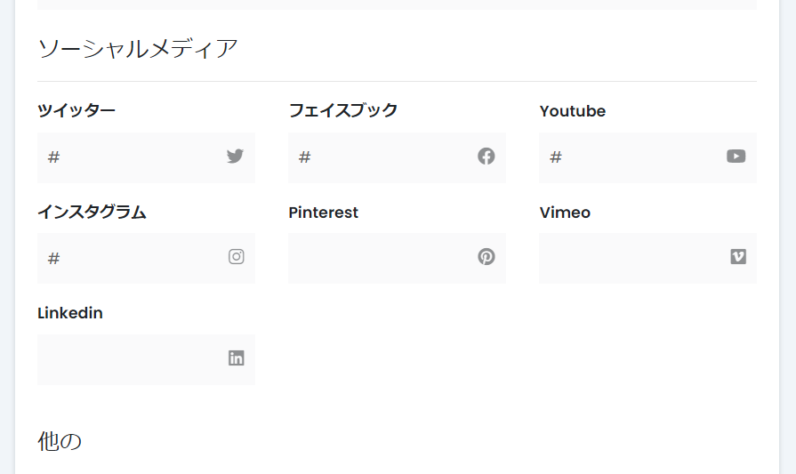 SNSはURLを入力するとアイコンが表示されるという仕組みなので、不要なSNSは空白で大丈夫です。