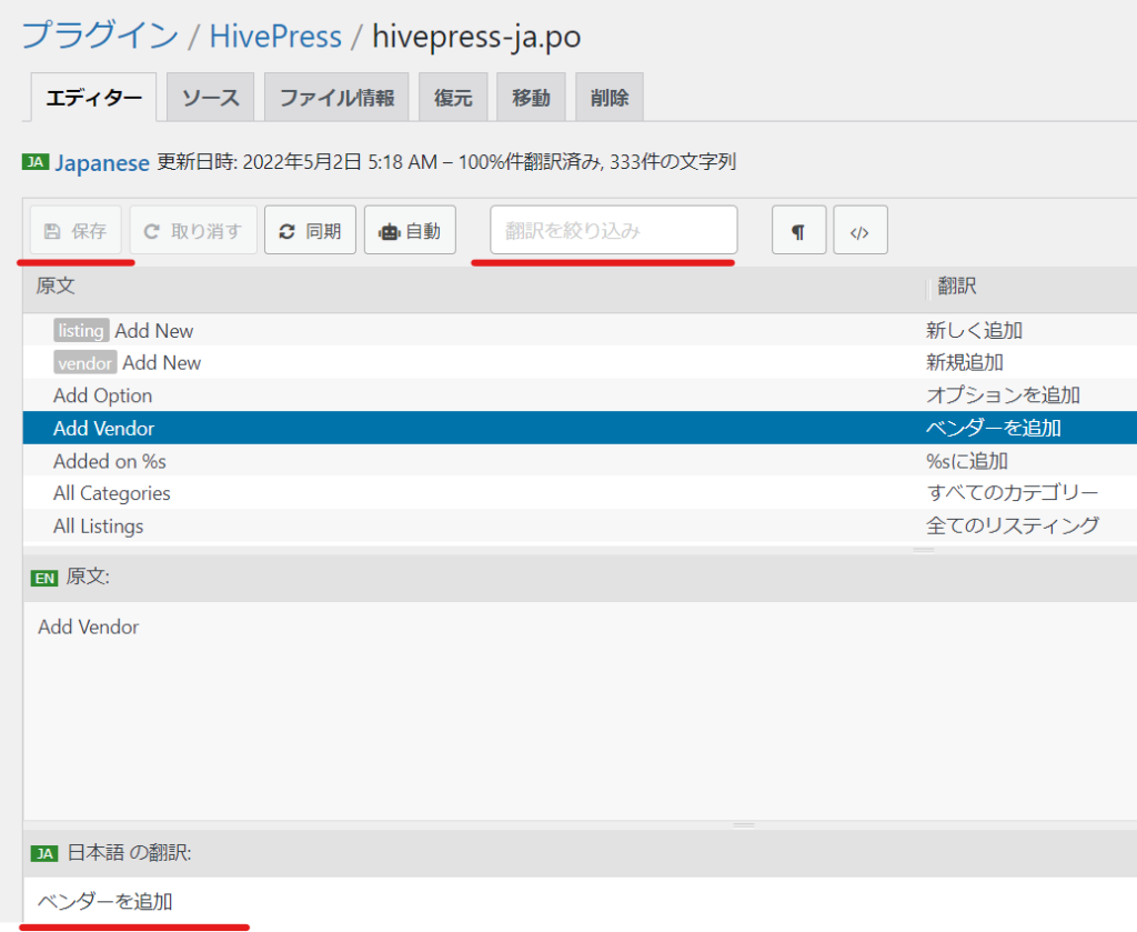 HivePressの拡張プラグインによっては日本語翻訳ファイルが生成されていない場合があります。