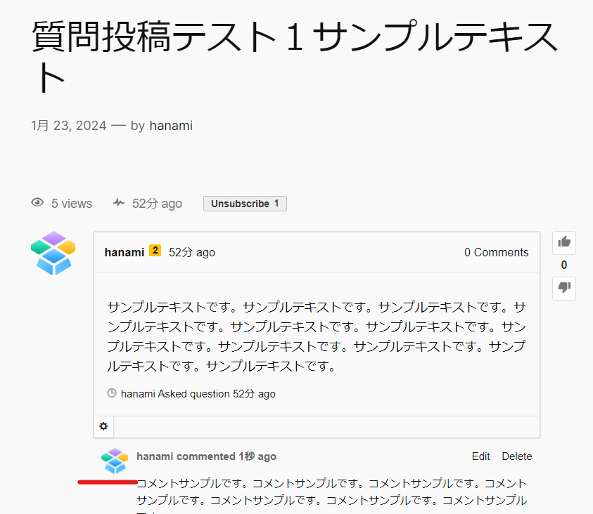 投稿された質問にコメントした人のアイコンサイズです。デフォルトで25になっています。
