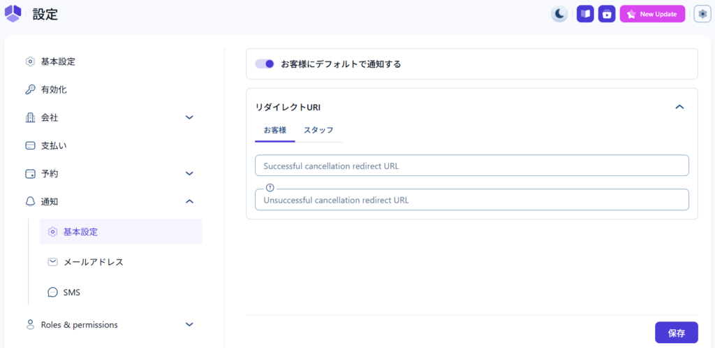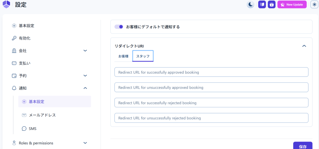 スタッフが受け取った通知に関するリダイレクト設定になります。