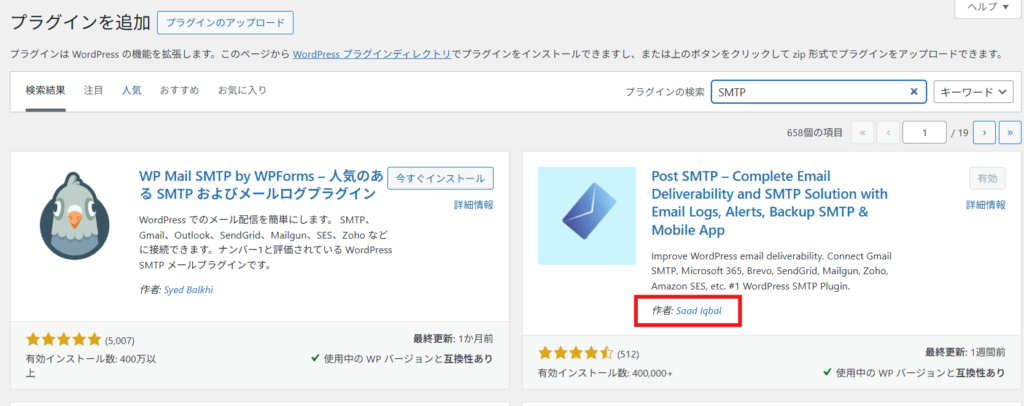 SMTP系のプラグインはいくつかあるのですが、無料版でログが取れるプラグインはPost SMTPになります。作者は【Saad Iqbal】です。有効化するだけでログは取れるようになります。