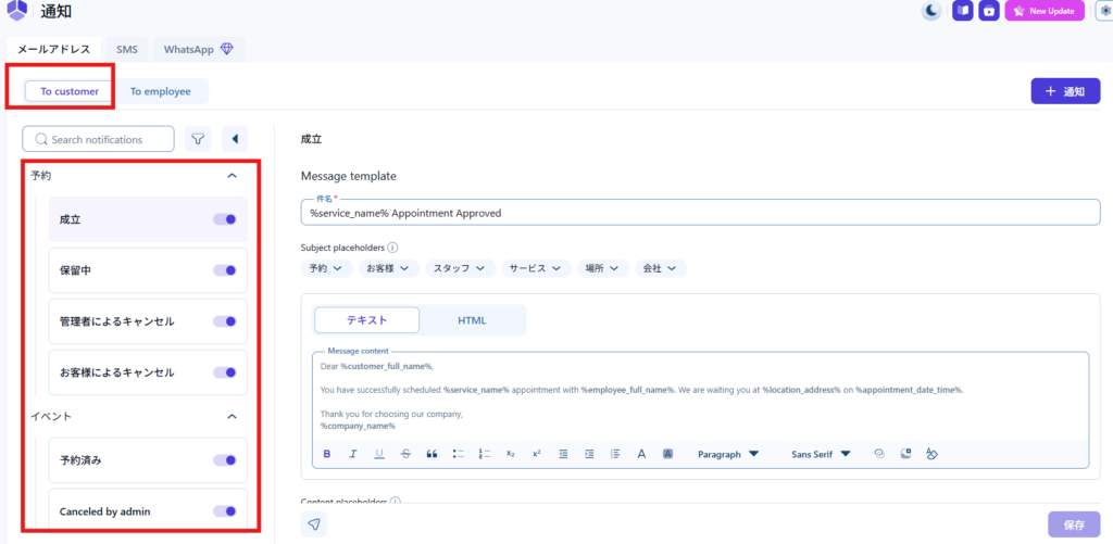 Amelia > 通知 > 顧客向け