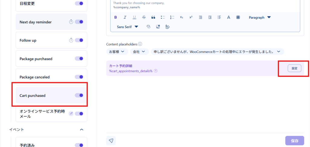 メールの通知設定の中に【Cart purchased】が追加されます。