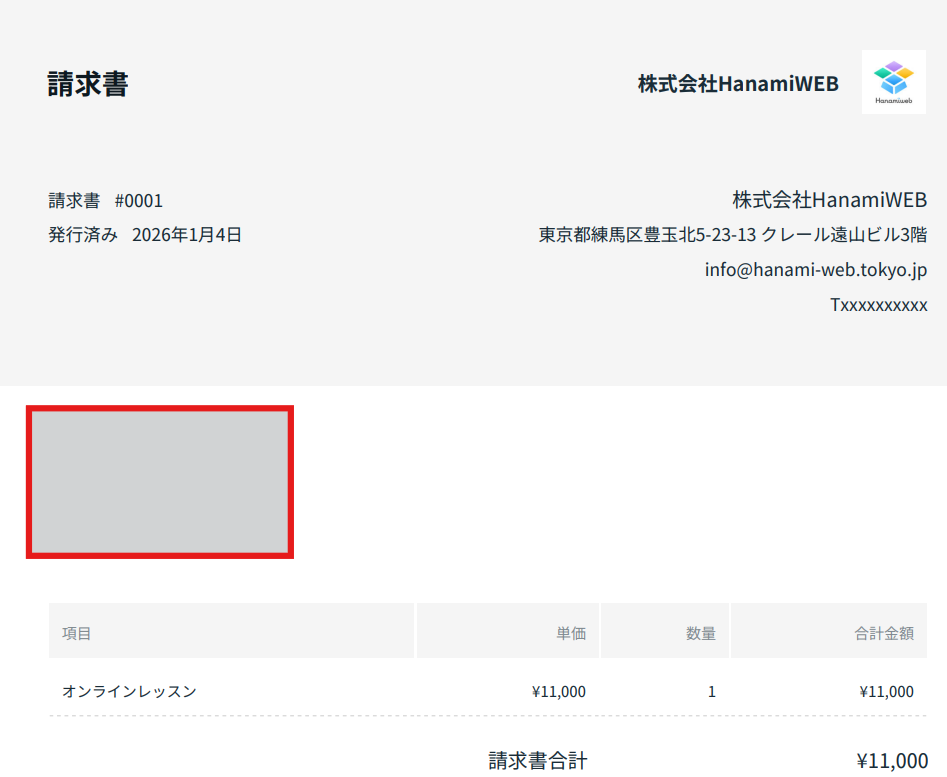 また、行をクリックすると(左側の赤枠)詳細が表示され、請求書を再送する事もできます。
