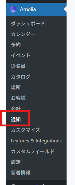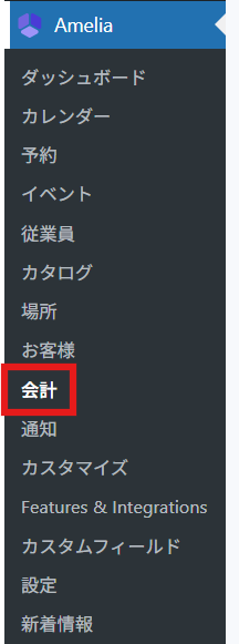 WordPress管理画面Amelia > Feature & Inteagrationをクリックします。