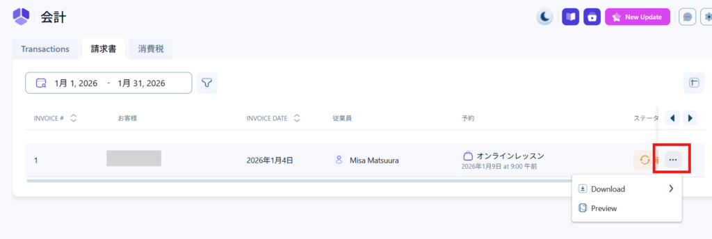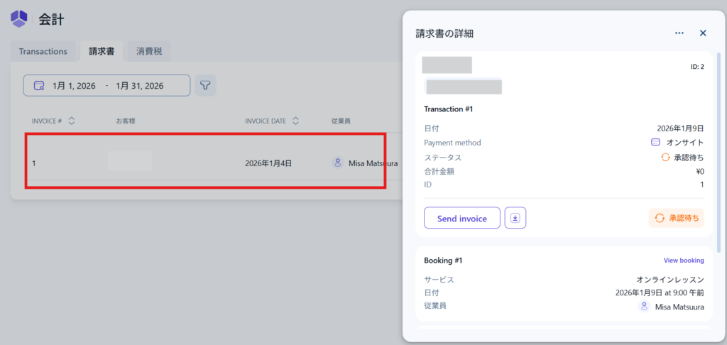 発行された請求書はAmeliaの会計から確認が出来ます。
