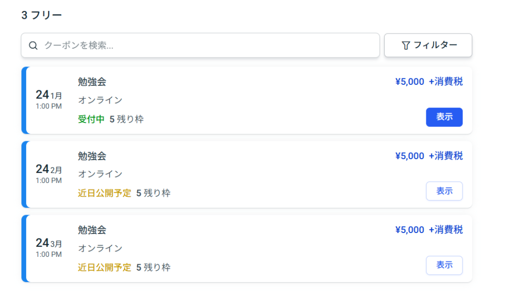 1月、2月、3月の予定が自動で生成され、それぞれ独立した予約が出来るようになっています。
