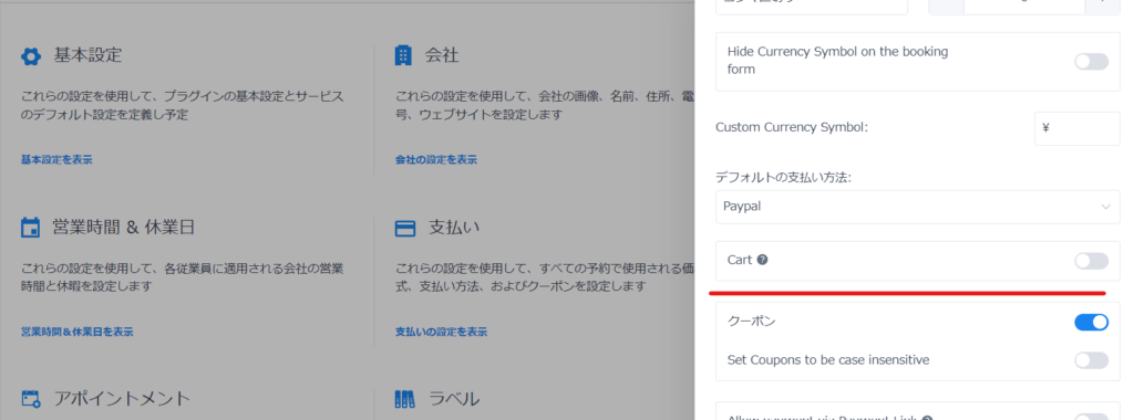 を開き「Cart」をONにします。