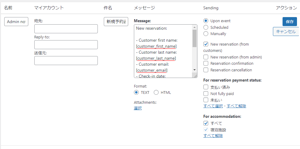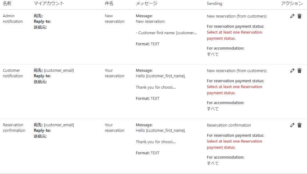 - [resa_accommodation]:予約された宿泊施設のタイプの名前(例:「ダブルルーム」)