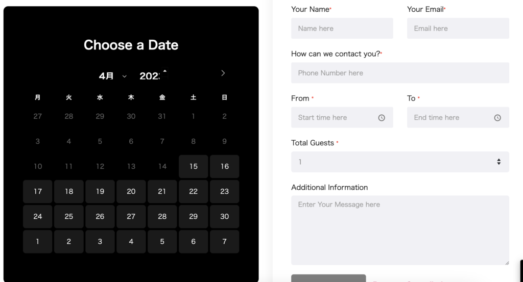WordPressでレストラン予約付ホームページ制作【WP Cafe】予約ページの表示方法