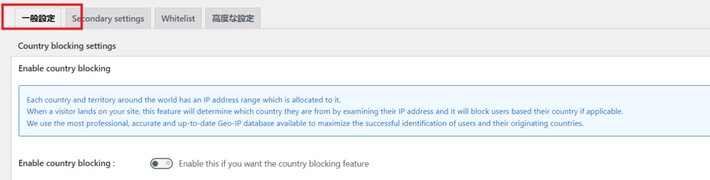 All in one WP SecurityのPremiumへアップグレードすると、Country block機能が使えます。一般設定では、国単位でアクセスをブロックする設定が出来ます。