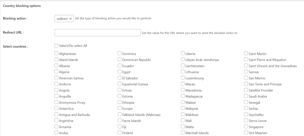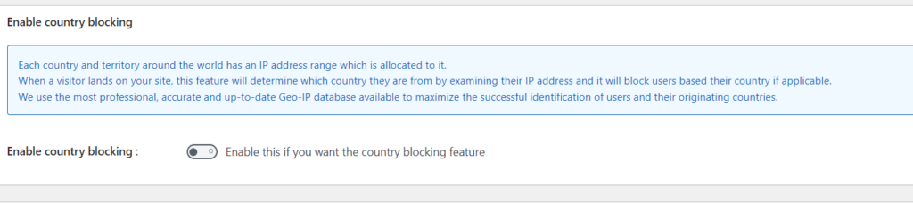 国単位でアクセスをブロックする場合、Enable country blockingをONにします。