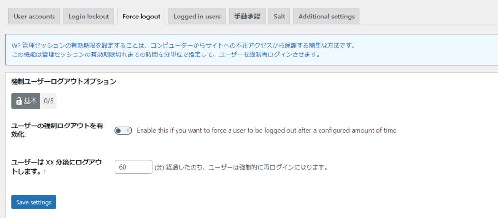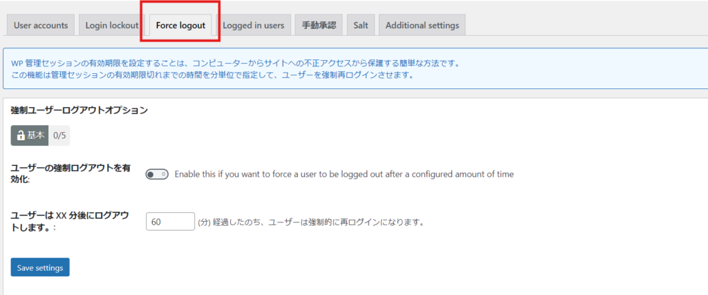 WordPressセキュリティ強化プラグインAll in one WP Secyrity~強制ログアウト設定