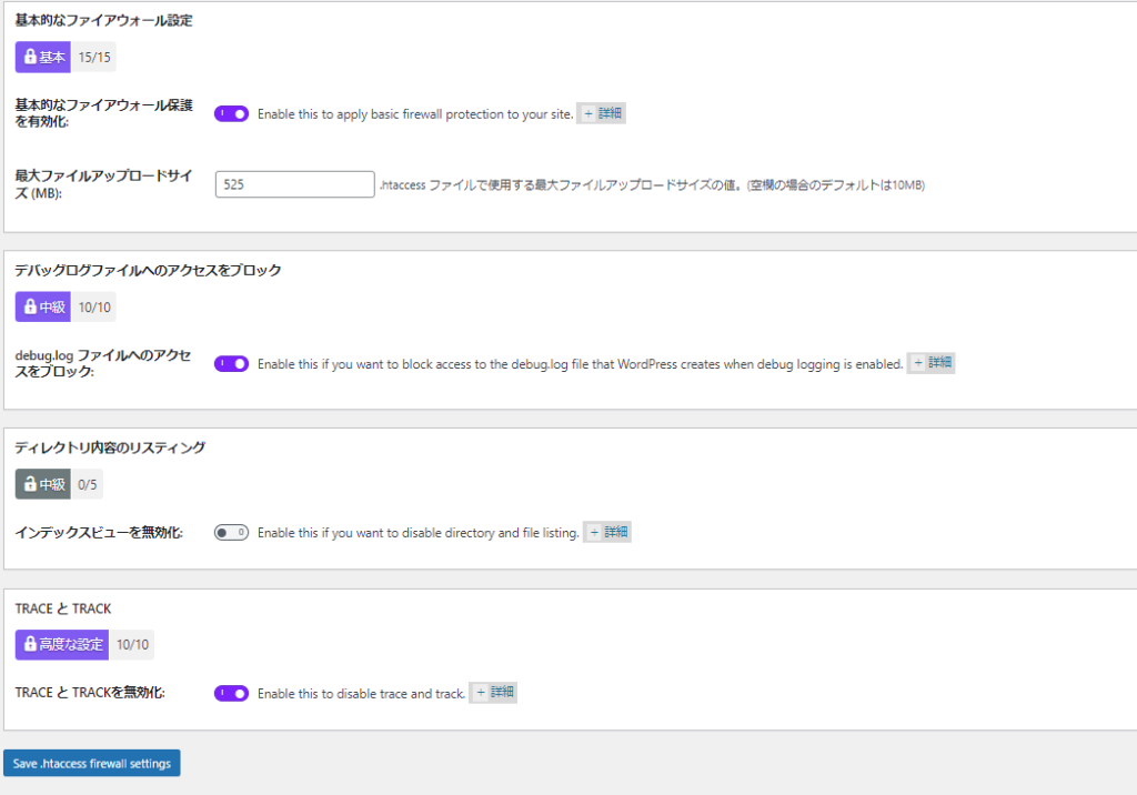 今回は、ファイアウォール > .htaccess rules設定を解説しています。