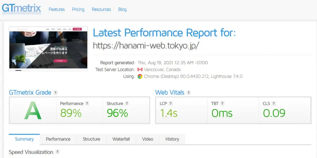 スコアA、表示速度も2秒切りました!(本当は1秒切りたい。。。)
