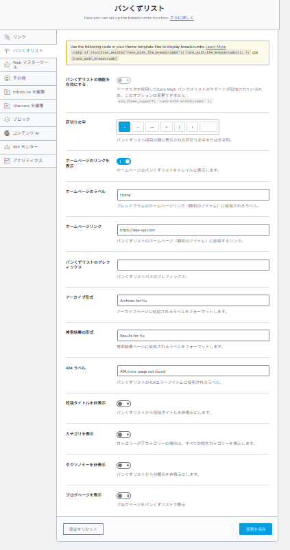 RankMath「パンくずリスト」設定ガイド