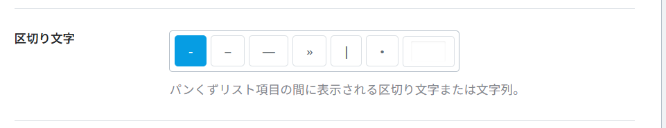 パンくずリストの各項目の間に表示される記号を設定します。