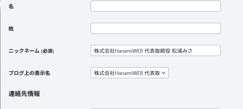 名前として表示されるので、権威ある形式でニックネームを入力します。