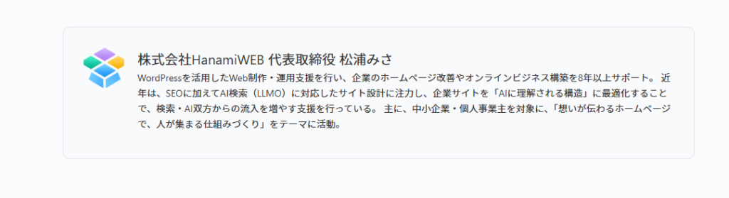 見やすく整理された著者情報は、ユーザーだけでなくAIにも理解しやすくなります。