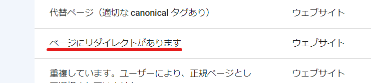 ページにリダイレクトがありますですが、サイトリニューアルなどをしている関係で、リダイレクトしているページが存在します。意図して設定しているのでこちらも問題ありません。