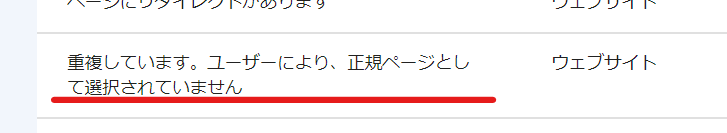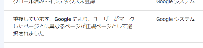 「重複しています。Google により、ユーザーがマークしたページとは異なるページが正規ページとして選択されました」