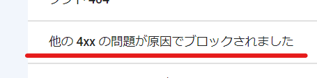 他の 4xx の問題が原因でブロックされました。こちらは、「/wp-admin/admin-ajax.php」というページが検出されていましたが、セキュリティプラグインで行っている対策で故意に行っている為、特に問題はありません。