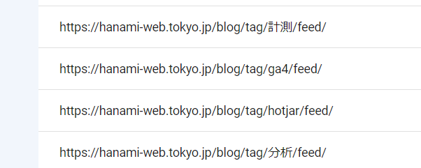 URLを確認するとfeedのページがこのように検出されていました。こちらもfeedページの事なので特に問題ありません。