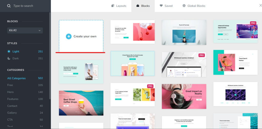 どのパーツでも良いのですが、今回は「Create your own」を使います。