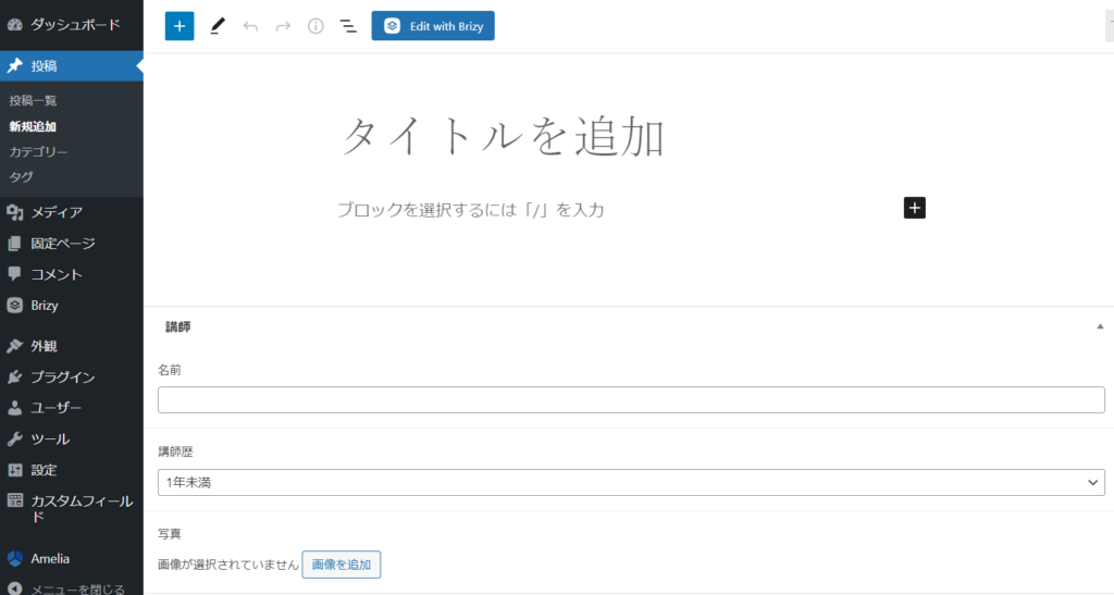 まずは、ノーコードでAdvance Custom Fieldで設定した項目を出力させる為にノーコードページビルダーBrizyを使いました。