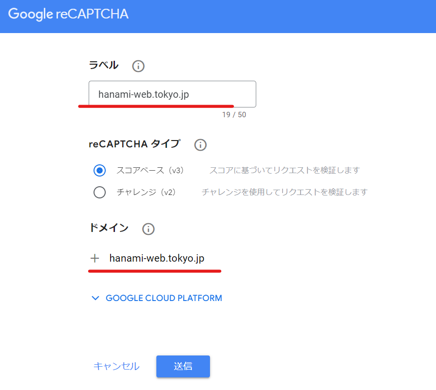 - reCAPTCHAタイプ ー スコアベース(v3)