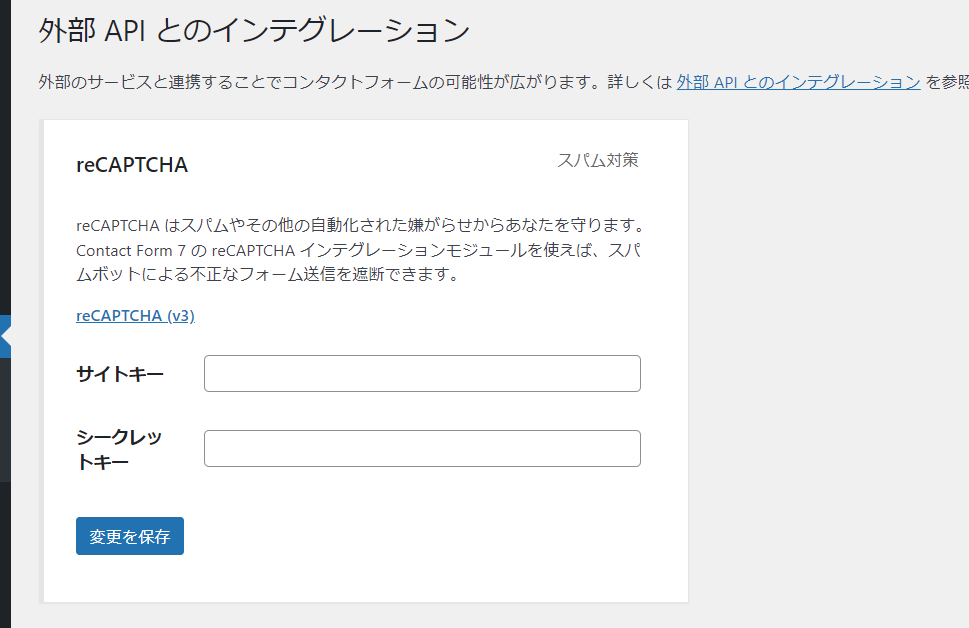 また、Contact Form7ではreCAPTCHAの設定が必須となっていますのでご注意ください。